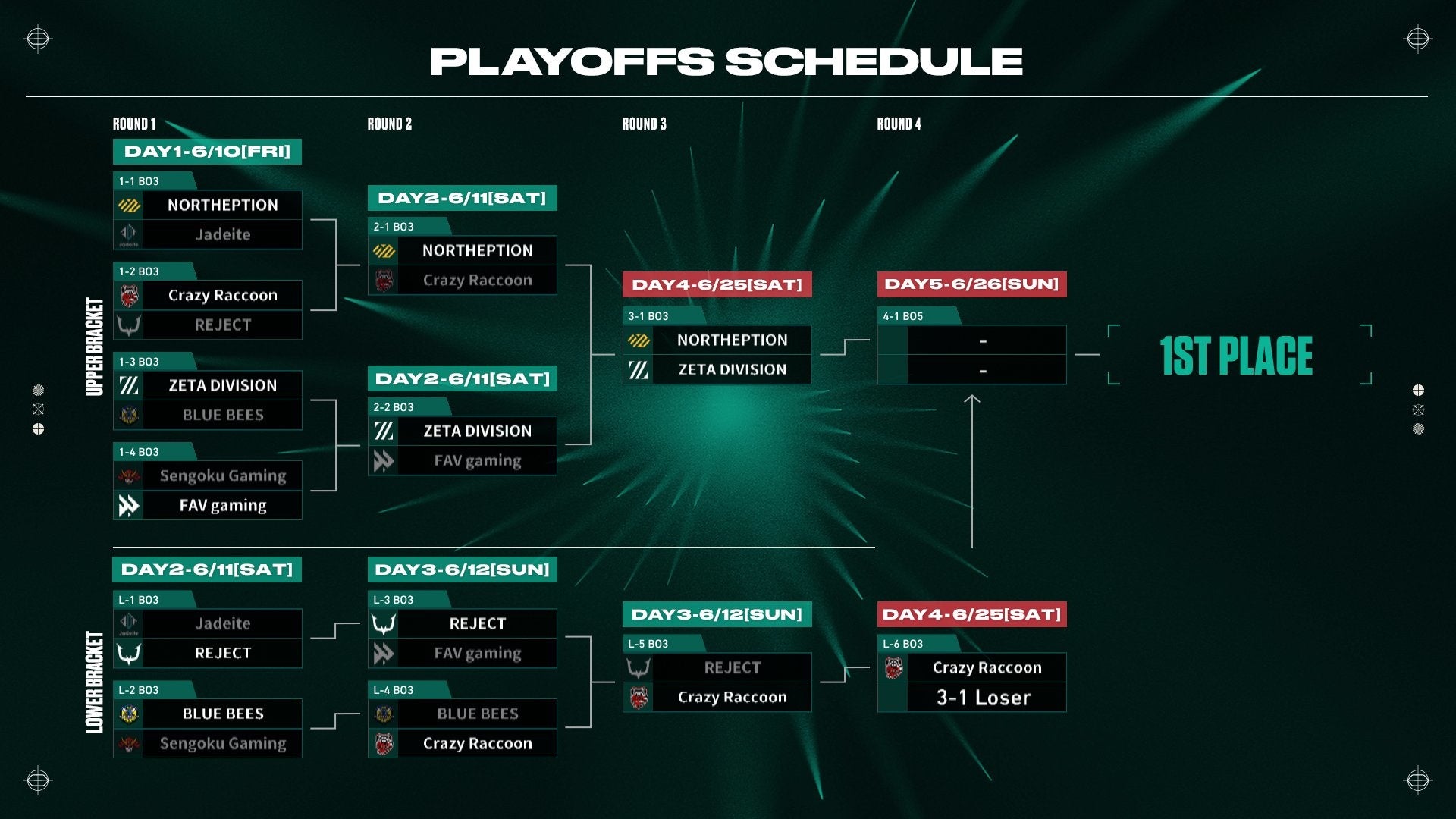 Playoffsのトーナメント表とスケジュール